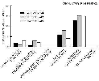 Fig. 4.25. ORNL NPDES limit compliance status comparison and locations of noncompliances, 1993-95.