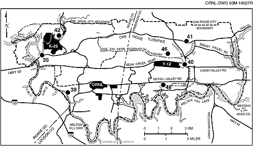 Fig. 5.2. External gamma radiation monitoring locations on the ORR.