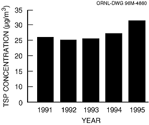 Fig. 5.8. Five-year total suspended particulate results at the K-25 Site.