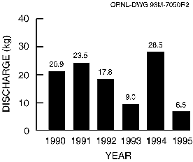 Fig. 4.2. Total kilograms of uranium discharged from the Y-12 Plant to the atmosphere, 1990-95.