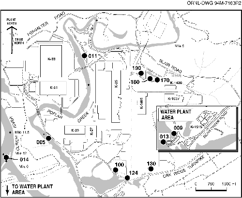 Fig. 4.22. K-25 Site NPDES major outfalls and Category I storm drain outfalls.