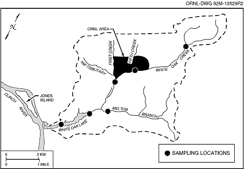 Fig. 4.28. ORNL sampling locations for polychlorinated biphenyls.