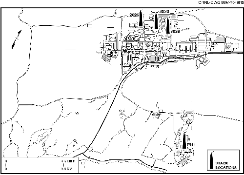 Fig. 4.3. Locations of major stacks (rad emission points) at ORNL.