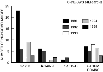 Fig. 4.30. K-25 Site NPDES compliance history by source of noncompliance.
