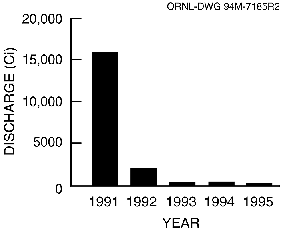 Fig. 4.4. Total discharges of 3H from ORNL to the atmosphere, 1991-95.