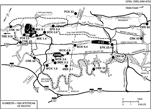 Fig. 5.12. Locations of ORR surface water sampling stations.
