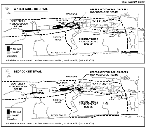 Fig. 7.13. Gross alpha activity in groundwater at the Y-12 Plant.