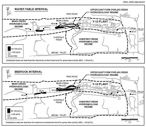 Fig. 7.14. Gross beta activity in groundwater at the Y-12 Plant.