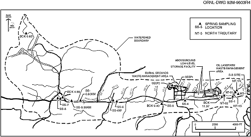 Fig. 7.16. Surface water and spring stations sampled during 1995 in the Bear Creek Hydrogeologic Regime.