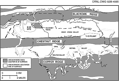 Fig. 7.2. The Knox Aquifer and the aquitards on the Oak Ridge Reservation.