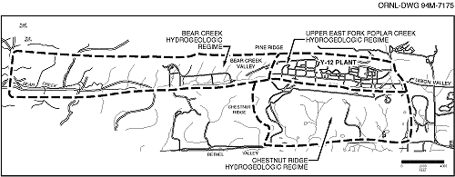 Fig. 7.5. Hydrogeologic regimes at the Y-12 Plant.